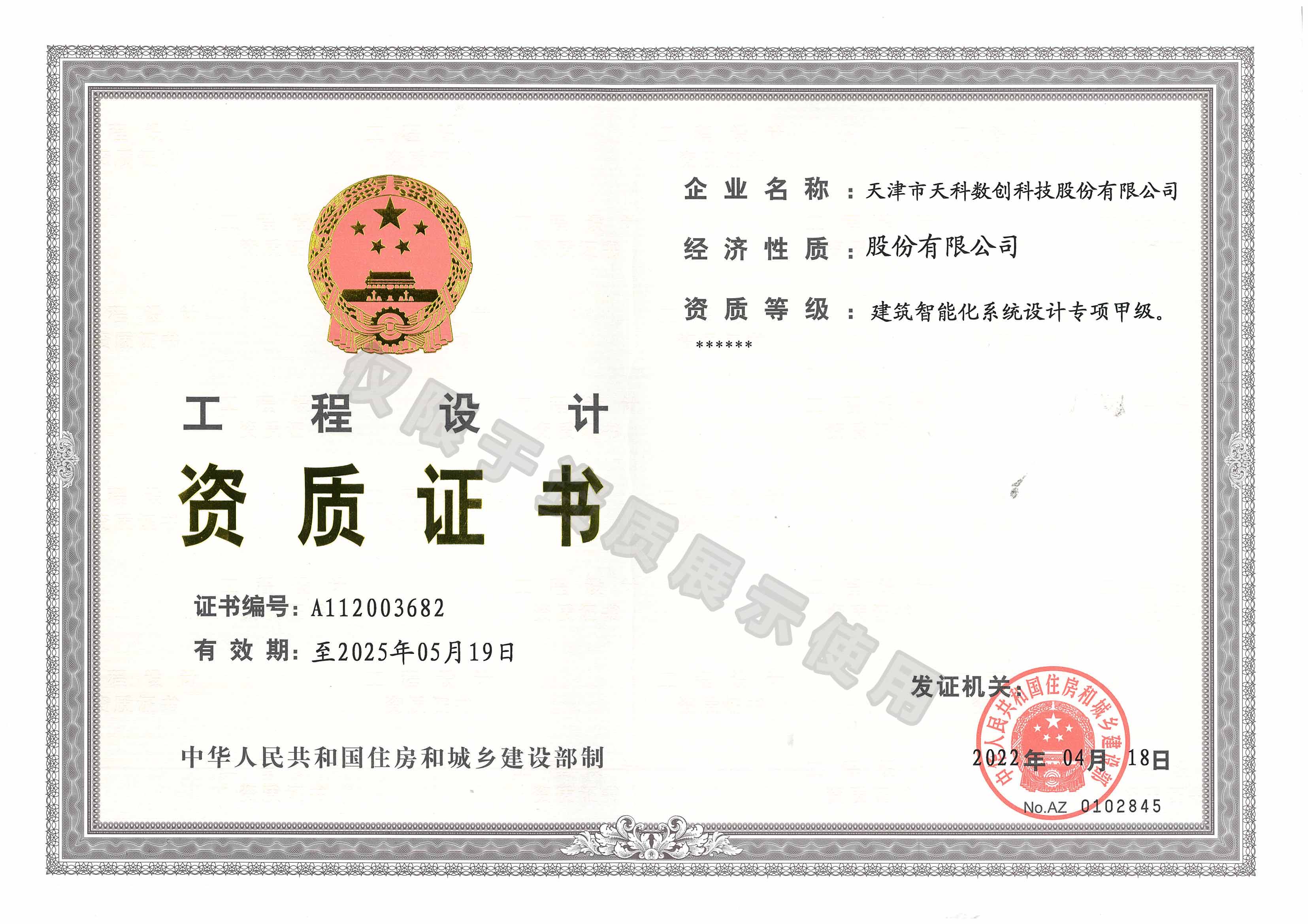 • 工程設(shè)計資質(zhì)證書